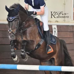 Очень изящная, высокая и красивая кобыла. Привезена в Россию в 2023 году и на сегодняшний день выступает в соревнованиях по конкуру с высотой до 140 см. Династия очень аккуратная и смелая лошадь с прекрасной…