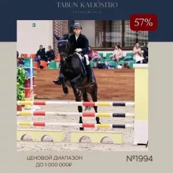 Очень изящная, высокая и красивая кобыла. Привезена в Россию в 2023 году и на сегодняшний день выступает в соревнованиях по конкуру с высотой до 140 см. Династия очень аккуратная и смелая лошадь с прекрасной…