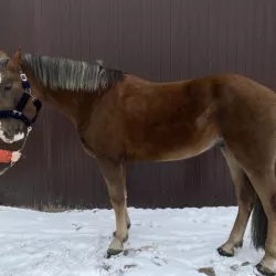 Рыжая кобыла, 2010 г, 150 в холке, паспорт ВНИИК. Изящная кобыла с прекрасным характером. Добрая, общительная, ориентирована на человека. Подойдёт даже неопытному всаднику или ребенку. В полях не разносит,…