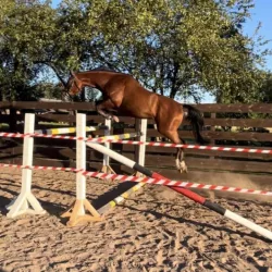 Очень изящная, высокая и красивая кобыла. Привезена в Россию в 2023 году и на сегодняшний день выступает в соревнованиях по конкуру с высотой до 140 см. Династия очень аккуратная и смелая лошадь с прекрасной…
