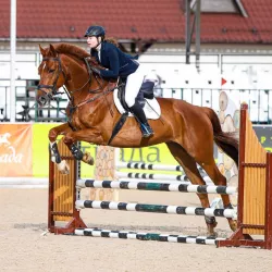 Очень изящная, высокая и красивая кобыла. Привезена в Россию в 2023 году и на сегодняшний день выступает в соревнованиях по конкуру с высотой до 140 см. Династия очень аккуратная и смелая лошадь с прекрасной…