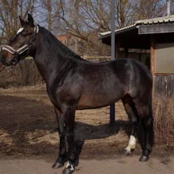 Очень изящная, высокая и красивая кобыла. Привезена в Россию в 2023 году и на сегодняшний день выступает в соревнованиях по конкуру с высотой до 140 см. Династия очень аккуратная и смелая лошадь с прекрасной…