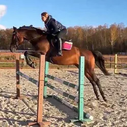 Очень изящная, высокая и красивая кобыла. Привезена в Россию в 2023 году и на сегодняшний день выступает в соревнованиях по конкуру с высотой до 140 см. Династия очень аккуратная и смелая лошадь с прекрасной…