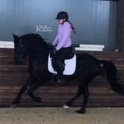 Очень изящная, высокая и красивая кобыла. Привезена в Россию в 2023 году и на сегодняшний день выступает в соревнованиях по конкуру с высотой до 140 см. Династия очень аккуратная и смелая лошадь с прекрасной…