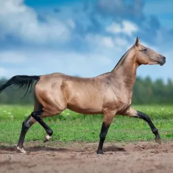 Очень изящная, высокая и красивая кобыла. Привезена в Россию в 2023 году и на сегодняшний день выступает в соревнованиях по конкуру с высотой до 140 см. Династия очень аккуратная и смелая лошадь с прекрасной…