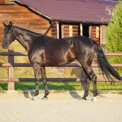 Очень изящная, высокая и красивая кобыла. Привезена в Россию в 2023 году  и на сегодняшний день выступает в соревнованиях по конкуру с высотой до 140 см. Династия  очень аккуратная и смелая лошадь с прекрасной…