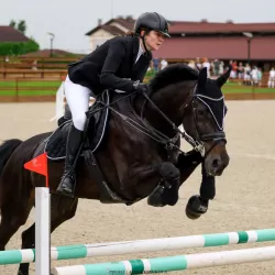 Очень изящная, высокая и красивая кобыла. Привезена в Россию в 2023 году и на сегодняшний день выступает в соревнованиях по конкуру с высотой до 140 см. Династия очень аккуратная и смелая лошадь с прекрасной…