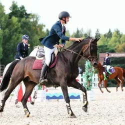Очень изящная, высокая и красивая кобыла. Привезена в Россию в 2023 году и на сегодняшний день выступает в соревнованиях по конкуру с высотой до 140 см. Династия очень аккуратная и смелая лошадь с прекрасной…