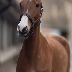 Очень изящная, высокая и красивая кобыла. Привезена в Россию в 2023 году и на сегодняшний день выступает в соревнованиях по конкуру с высотой до 140 см. Династия очень аккуратная и смелая лошадь с прекрасной…