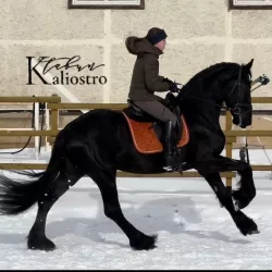 Очень изящная, высокая и красивая кобыла. Привезена в Россию в 2023 году и на сегодняшний день выступает в соревнованиях по конкуру с высотой до 140 см. Династия очень аккуратная и смелая лошадь с прекрасной…