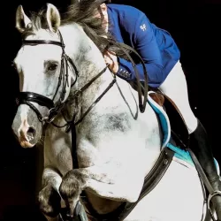 Очень изящная, высокая и красивая кобыла. Привезена в Россию в 2023 году и на сегодняшний день выступает в соревнованиях по конкуру с высотой до 140 см. Династия очень аккуратная и смелая лошадь с прекрасной…