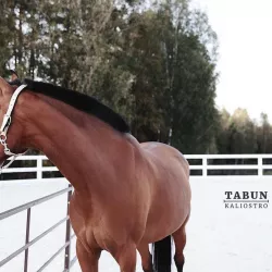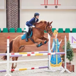 Очень изящная, высокая и красивая кобыла. Привезена в Россию в 2023 году и на сегодняшний день выступает в соревнованиях по конкуру с высотой до 140 см. Династия очень аккуратная и смелая лошадь с прекрасной…