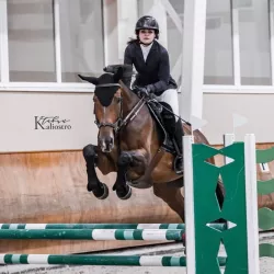Очень изящная, высокая и красивая кобыла. Привезена в Россию в 2023 году и на сегодняшний день выступает в соревнованиях по конкуру с высотой до 140 см. Династия очень аккуратная и смелая лошадь с прекрасной…