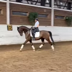 Очень изящная, высокая и красивая кобыла. Привезена в Россию в 2023 году и на сегодняшний день выступает в соревнованиях по конкуру с высотой до 140 см. Династия очень аккуратная и смелая лошадь с прекрасной…