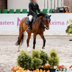 Очень изящная, высокая и красивая кобыла. Привезена в Россию в 2023 году и на сегодняшний день выступает в соревнованиях по конкуру с высотой до 140 см. Династия очень аккуратная и смелая лошадь с прекрасной…