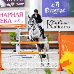 Очень изящная, высокая и красивая кобыла. Привезена в Россию в 2023 году и на сегодняшний день выступает в соревнованиях по конкуру с высотой до 140 см. Династия очень аккуратная и смелая лошадь с прекрасной…