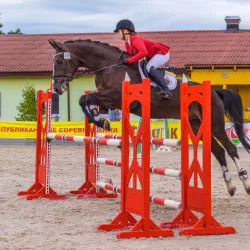 Очень изящная, высокая и красивая кобыла. Привезена в Россию в 2023 году и на сегодняшний день выступает в соревнованиях по конкуру с высотой до 140 см. Династия очень аккуратная и смелая лошадь с прекрасной…