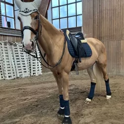 Очень изящная, высокая и красивая кобыла. Привезена в Россию в 2023 году и на сегодняшний день выступает в соревнованиях по конкуру с высотой до 140 см. Династия очень аккуратная и смелая лошадь с прекрасной…