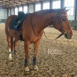 Очень изящная, высокая и красивая кобыла. Привезена в Россию в 2023 году и на сегодняшний день выступает в соревнованиях по конкуру с высотой до 140 см. Династия очень аккуратная и смелая лошадь с прекрасной…