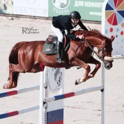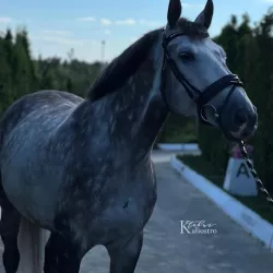 Очень изящная, высокая и красивая кобыла. Привезена в Россию в 2023 году и на сегодняшний день выступает в соревнованиях по конкуру с высотой до 140 см. Династия очень аккуратная и смелая лошадь с прекрасной…