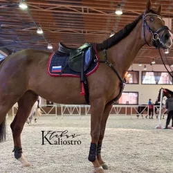 Очень изящная, высокая и красивая кобыла. Привезена в Россию в 2023 году и на сегодняшний день выступает в соревнованиях по конкуру с высотой до 140 см. Династия очень аккуратная и смелая лошадь с прекрасной…
