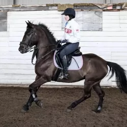 Очень изящная, высокая и красивая кобыла. Привезена в Россию в 2023 году и на сегодняшний день выступает в соревнованиях по конкуру с высотой до 140 см. Династия очень аккуратная и смелая лошадь с прекрасной…