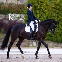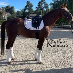 Очень изящная, высокая и красивая кобыла. Привезена в Россию в 2023 году и на сегодняшний день выступает в соревнованиях по конкуру с высотой до 140 см. Династия очень аккуратная и смелая лошадь с прекрасной…