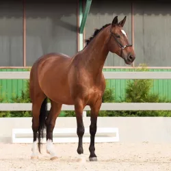Очень изящная, высокая и красивая кобыла. Привезена в Россию в 2023 году и на сегодняшний день выступает в соревнованиях по конкуру с высотой до 140 см. Династия очень аккуратная и смелая лошадь с прекрасной…