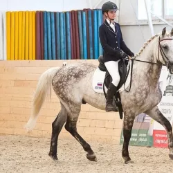 Очень изящная, высокая и красивая кобыла. Привезена в Россию в 2023 году и на сегодняшний день выступает в соревнованиях по конкуру с высотой до 140 см. Династия очень аккуратная и смелая лошадь с прекрасной…