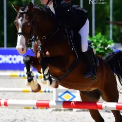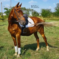 Очень изящная, высокая и красивая кобыла. Привезена в Россию в 2023 году и на сегодняшний день выступает в соревнованиях по конкуру с высотой до 140 см. Династия очень аккуратная и смелая лошадь с прекрасной…