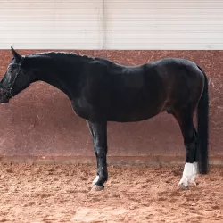 Очень изящная, высокая и красивая кобыла. Привезена в Россию в 2023 году и на сегодняшний день выступает в соревнованиях по конкуру с высотой до 140 см. Династия очень аккуратная и смелая лошадь с прекрасной…