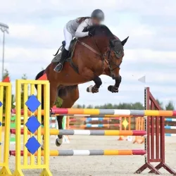 Очень изящная, высокая и красивая кобыла. Привезена в Россию в 2023 году и на сегодняшний день выступает в соревнованиях по конкуру с высотой до 140 см. Династия очень аккуратная и смелая лошадь с прекрасной…