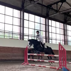 Очень изящная, высокая и красивая кобыла. Привезена в Россию в 2023 году и на сегодняшний день выступает в соревнованиях по конкуру с высотой до 140 см. Династия очень аккуратная и смелая лошадь с прекрасной…