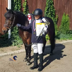 Очень изящная, высокая и красивая кобыла. Привезена в Россию в 2023 году и на сегодняшний день выступает в соревнованиях по конкуру с высотой до 140 см. Династия очень аккуратная и смелая лошадь с прекрасной…