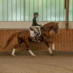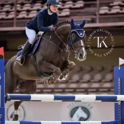 Очень изящная, высокая и красивая кобыла. Привезена в Россию в 2023 году и на сегодняшний день выступает в соревнованиях по конкуру с высотой до 140 см. Династия очень аккуратная и смелая лошадь с прекрасной…
