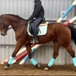 Очень изящная, высокая и красивая кобыла. Привезена в Россию в 2023 году и на сегодняшний день выступает в соревнованиях по конкуру с высотой до 140 см. Династия очень аккуратная и смелая лошадь с прекрасной…