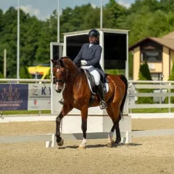Очень изящная, высокая и красивая кобыла. Привезена в Россию в 2023 году и на сегодняшний день выступает в соревнованиях по конкуру с высотой до 140 см. Династия очень аккуратная и смелая лошадь с прекрасной…