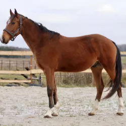 Очень изящная, высокая и красивая кобыла. Привезена в Россию в 2023 году и на сегодняшний день выступает в соревнованиях по конкуру с высотой до 140 см. Династия очень аккуратная и смелая лошадь с прекрасной…
