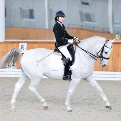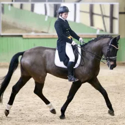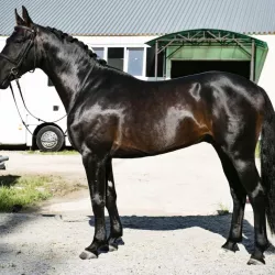 Очень изящная, высокая и красивая кобыла. Привезена в Россию в 2023 году и на сегодняшний день выступает в соревнованиях по конкуру с высотой до 140 см. Династия очень аккуратная и смелая лошадь с прекрасной…