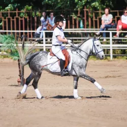 Очень изящная, высокая и красивая кобыла. Привезена в Россию в 2023 году и на сегодняшний день выступает в соревнованиях по конкуру с высотой до 140 см. Династия очень аккуратная и смелая лошадь с прекрасной…