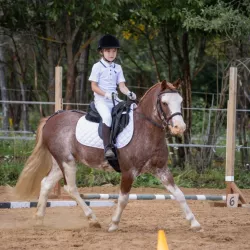 Мерин 2018 г.р. Рост 165 см. УВП ( Бонфайер Афродита ). Хорошо выезжен. Ходит маршруты до 100 см под детьми, выше некому прыгать, есть перспектива выше. На соревнованиях ведет себя как дома, часто в…