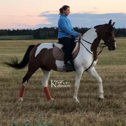 Не жеребцует, верхом и в руках ведёт себя, адекватно. Всё манипуляции без проблем. Ездит любитель, стартует 90 105, на тренировках выше.Знаком с троеборными барьерами. Обладает неплохими, приятными движениями,…