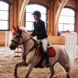 Кобыла ганноверской породы 2014 гр, 167 в холке . Маршруты пока до 100 см, отдельные связки до 120, на свободе до 140.Под ребёнком 80 90.Не таскает , ровная . Ходит в поля и лес . Колется , грузится ,…