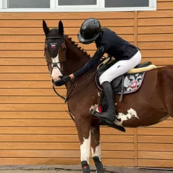 Мерин 2017 г.р. Рост 163 см. Голштинская помесь, от голштинского Кассивеля ( Германия ) и чистокровной Эстер. Стартовый опыт до 80 см, на тренировках связки и в упражнениях выше, одиночные до 130 см,…