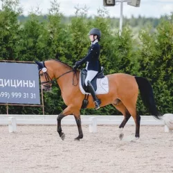 Очень изящная, высокая и красивая кобыла. Привезена в Россию в 2023 году и на сегодняшний день выступает в соревнованиях по конкуру с высотой до 140 см. Династия очень аккуратная и смелая лошадь с прекрасной…