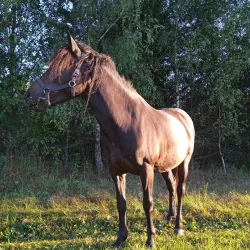 №724 К продаже предлагается: Кобыла. Орловской рысистой породы. Вороной масти. 170 см в холке. 2011 года рождения. Мать Основа, отец Партизан. Рождена в Томбове. Недоверчива, требуется время,…