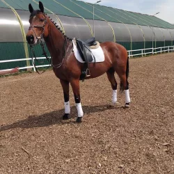 Очень изящная, высокая и красивая кобыла. Привезена в Россию в 2023 году и на сегодняшний день выступает в соревнованиях по конкуру с высотой до 140 см. Династия очень аккуратная и смелая лошадь с прекрасной…