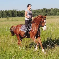 Кобыла.Русской рысистой породы.Рыжей масти.155 см в холке.2016 года рождения.Ласковая и добрая.Ориентирована на человека.Не имеет вредных привычек.Перспективна в конкур.В стадии заездки, работает на корде.Находится…
