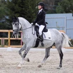Очень изящная, высокая и красивая кобыла. Привезена в Россию в 2023 году и на сегодняшний день выступает в соревнованиях по конкуру с высотой до 140 см. Династия очень аккуратная и смелая лошадь с прекрасной…
