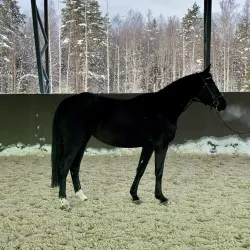 Очень изящная, высокая и красивая кобыла. Привезена в Россию в 2023 году и на сегодняшний день выступает в соревнованиях по конкуру с высотой до 140 см. Династия очень аккуратная и смелая лошадь с прекрасной…